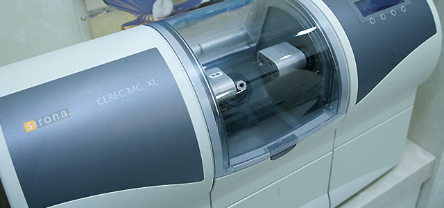 セレック システム 1日で治療が完了! 最新の歯科治療です。 アンチエージング 現在、アンチエージングと呼ばれる老化防止医療が進み長く美しく生きる事を望まれるようになりました。口の中も、もちろん「美しく」「健康」でなくては美味しい食事もできません。口は体の入り口です。詰め物である金属も毎日体の中に入り、体に悪い影響を及ぼしている事も分かってきました。 時間がない、を理由に治療に行かれない方にも是非知って頂きたいシステムです。 デジタル歯科とは デジタル歯科とは、医療先進国ドイツからやってきた、コンピュータ制御によって歯の修復物を設計・製作するCAD/CAMシステムです。3D光学カメラを使用して患部を撮影(スキャン)し、修復物を設計・作製します。規格生産された高品質なセラミックブロックを使用するため耐久性が高く、治療時間も非常にスピーディーです。上質なセラミックを使うため、金属アレルギーの心配もありません。 セレックセラミック 治療費:1本33,000円 治療の流れ STEP1 3Dカメラで口腔内を撮影します 治療する部分を削ったあとは、3D光学カメラを使用して患部を撮影(スキャン)。型取りの不快感を味わうことはありません。わずか数秒の作業で、患部の歯列がモニター上に再現されます。 治療の流れ STEP2 コンピューターで設計します モニター上で歯の形態や噛み合わせの調整を、あらゆる角度から行い、理想的な形にしていきます。設計後は様々な色のセラミックブロックから最適な色のものを選定します。 治療の流れ STEP3 加工を院内で仕上げます ミリングマシンと呼ばれる機械(CAM)が、コンピュータで設計されたデータをもとに セラミックブロックを削り出し、修復物を精密に整えていきます。 治療の流れ STEP4 セット 約90%の残存率を誇る接着法を用いてでき上がったセラミック歯を装着します。 1回の治療で修了です。 検診によって隠れた虫歯も見つかることがあります 健康の為にも是非定期的に検診を受け、 その日に完治できるこのデジタル歯科治療を お勧め致します。